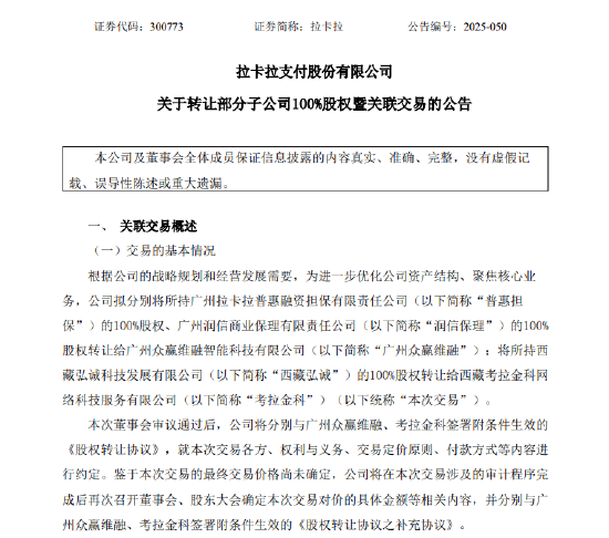 8月8日金融一线音讯,拉卡拉发布公告开云体育(中国)官方网站,公司拟离别将所合手广州拉卡拉普惠融资担保有限包袱公司的100%股权、广州润信买卖保理有限包袱公司的100%股权转让给广州众赢维融智能科技有限公司;将所合手西藏弘诚科技发展有限公司的100%股权转让给西藏考拉金科汇集科技做事有限公司。