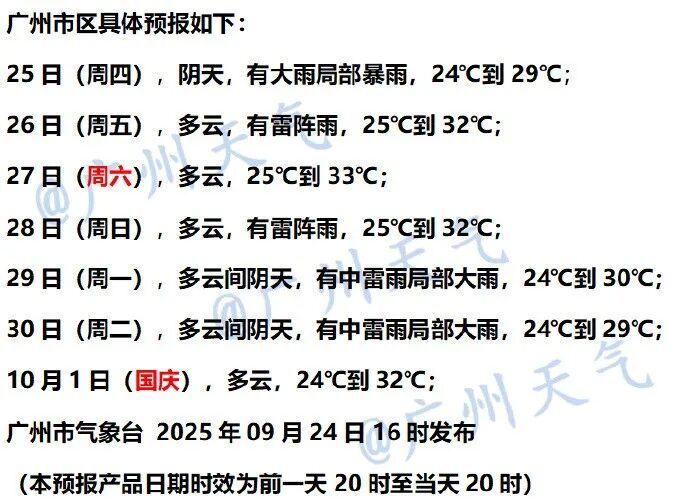 广州市快意台瞻望,受台风“桦加沙”影响,9月24昼夜间—25日广州仍有大到暴雨局部大暴雨,阵风从6~10级逐步轻佻。9月26日—27日广州降水轻佻,多云有雷阵雨。